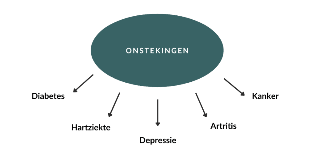 Eén onbalans kan leiden tot meerdere aandoeningen, zoals ontstekingen die pijn, vermoeidheid en hartziekte kunnen veroorzaken.